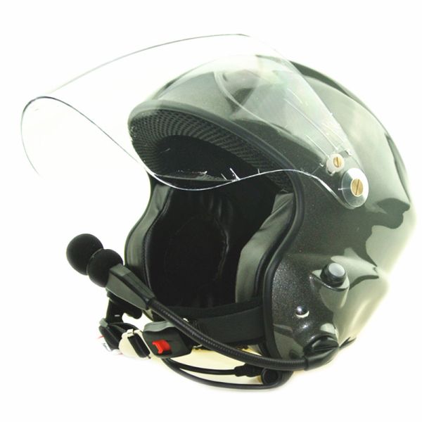 | Characteristic: Specially design for paramotor Kevlar / glass fiber composite material,High quality communication system Two button on left and right design,when pilot fly could control the communicate by both hand KENWOOD/ YAESU/ ICOM/ MOTO connector could be supported. Whole use leather lining more comfortable, breathable and sound insulation performance much better Noise-cancelling military-grade microphone Mic features a removable/washable mouthpiece Comes with a detachable full-face shield (winter flying – protects you from the elements) Goggle strap (holder) on rear of helmet |